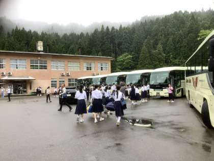 お世話になった方々に送られて、生徒たちが、続々と本部の「こぶし」に戻ってきます。