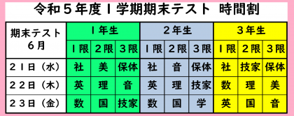 次の学習会は、テスト1日目。14時40分まで予定していますので、参加する人は、昼食の用意をお願いします。