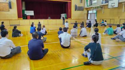 さて、今日は期末テストの後、先生方はどんなことをしているのか、レポートします。テストの後には当然採点が待っているのですが、先生方は、ほかにも校内外で研修をしています。今日は、さすまたを使った、防犯教室を行い、大勢の教職員が参加して不審者対策について学びました。