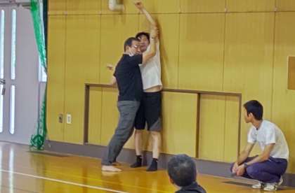 ここでは、相手との距離が近くても、小さな力で相手をひっくり返したり、動けなくしたり。逮捕術の専門家としてお仕事をしてこられた支援員さんの、経験に満ちた、貴重な時間は、あっという間に過ぎていきました。