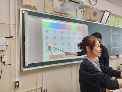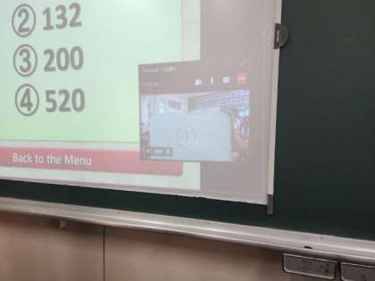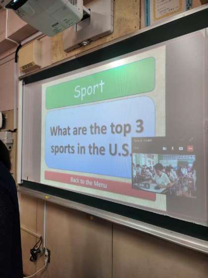 英語はジョパディというゲームを行っています。それぞれの小学校に答えてもらっていますが、みんな頑張って答えてくれています。