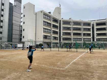 本日は、今宮中学校のソフトテニス部に来ていただき、本校で練習試合を行いました。