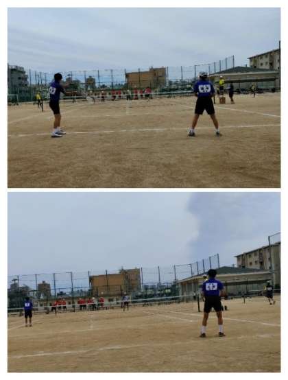 初戦、阪南中学校との試合は1試合目、2−0とリードするも相手に追いつかれ、ファイナルゲームも劣勢になります。後衛のストロークが調子よく決まるシーンもありましたが、ボレーチャンスを生かせず、ファイナルゲームもとられてしまい敗れました。