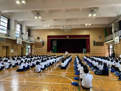 今日は西岡先生から、明日のピースおおさかへの校外学習についてお話がありました。