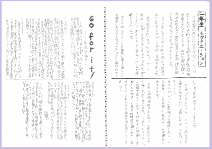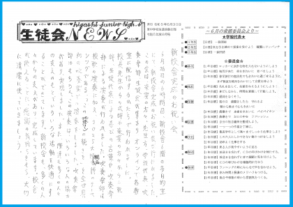 表面では、生徒議会で報告された、各常置委員会の内容。そして、創立35周年記念・新しい校舎の完成をお祝いする会のレポート。