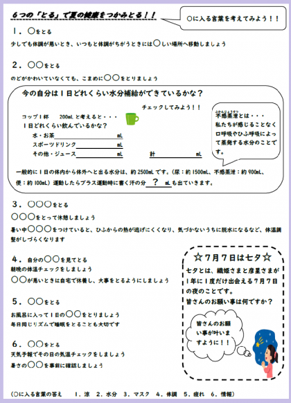 6つの「〇〇」をとって、健康な夏を過ごしましょう!!