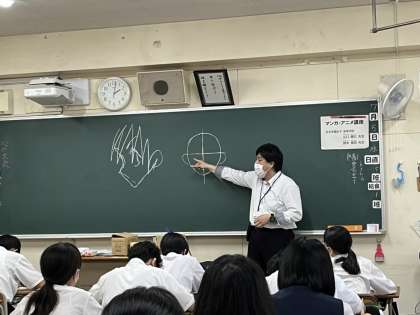 好文学園女子高等学校の出前授業「マンガ・アニメ講座」の様子です。