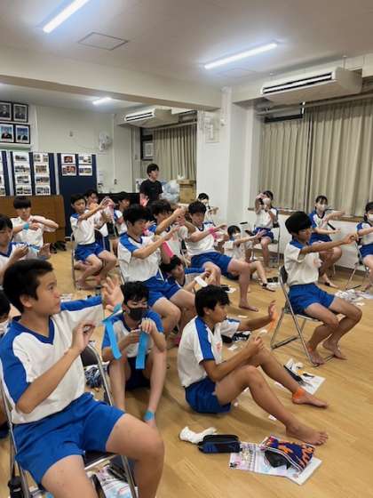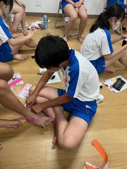宣真高等学校の出前授業「キネシオテーピング」の様子です。