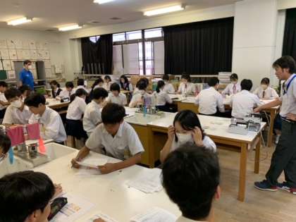 6時間目の大阪高等学校の出前授業「大科学実験」の様子です。