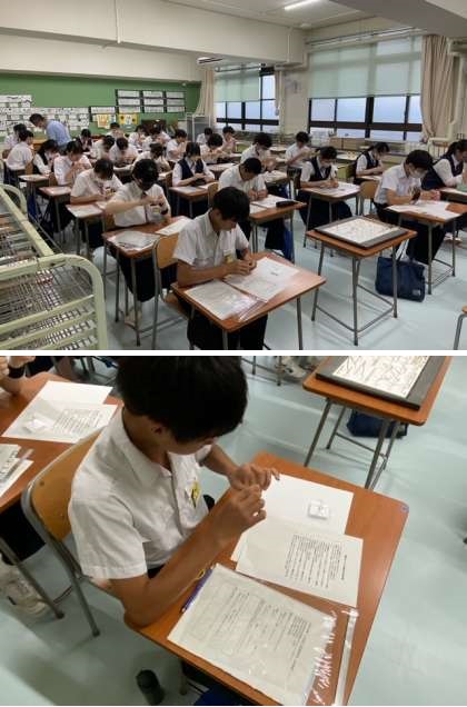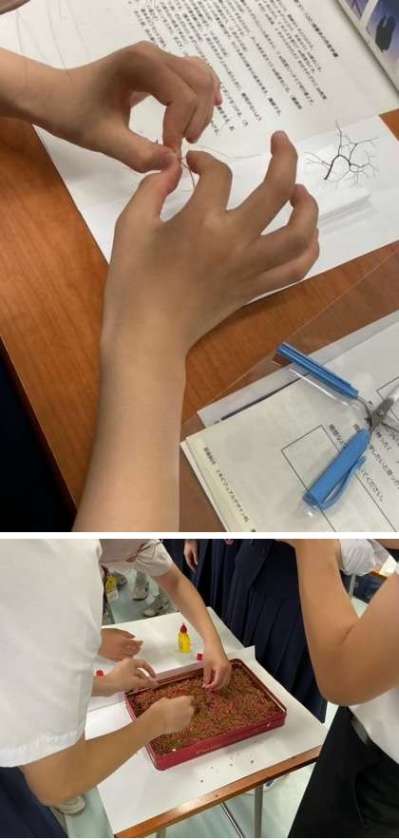 6限の工芸高校の先生による「建築模型用樹木の作成」講座の様子です。