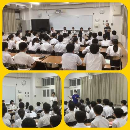 1学期締め括りの生徒議会。各学年の学代と各常置委員会の委員長からの報告に続いて、生徒会担当の先生方からお話がありました。挨拶活動・スマホルールのこと、夏休みを成長できるチャンスにしてほしいこと、出会いを大切に過ごしてほしいこと、お金を大切に使うことと事故に巻き込まれないようにしてほしいことなどのお話でした。校長先生からは「新しい校舎の完成をお祝いする会」の会場・教室での参加の素晴らしさへお礼がありました。また、2学期、この生徒議会のメンバーがリーダーとなり、体育大会・文化発表会をはじめ、東中学校のリーダーとして706人の全校生徒をまとめ、引っ張っていってほしいとエールが贈られました。