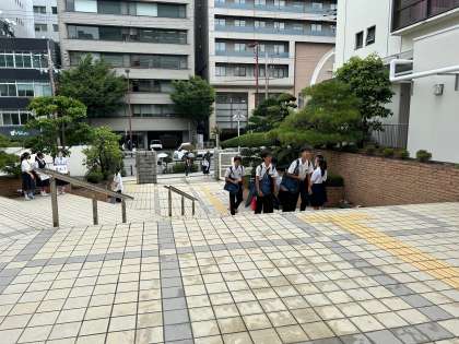 少しあいさつの声がとだえると、蝉の鳴き声がしています。