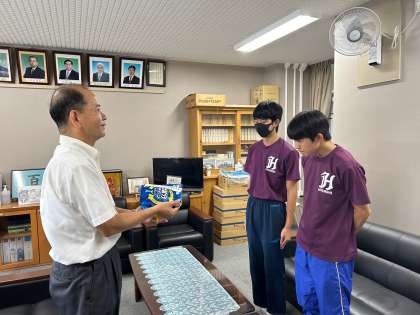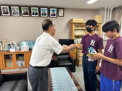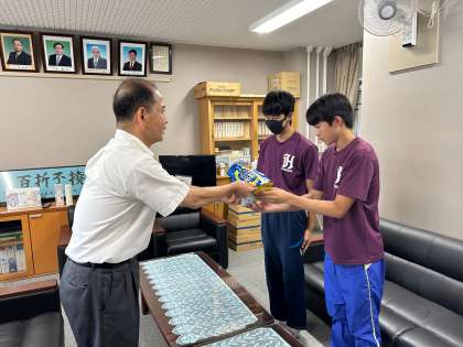 休日の朝、がんばる部活動、水泳部に校長より激励式が行われました。夏休みの試合に向けて、ベストを尽くしてください!と校長先生より激励いただき、地域の方より、熱中症対策のタブレットが渡されました。がんばれ!水泳部!