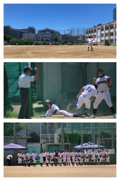 野球部の大会3回戦は、炎天下の下での試合となり、逆転に次ぐ逆転の展開になりました。保護者をはじめ、たくさんお越しいただいた応援の方々の声援を力に最後まで戦いましたが、残念ながらの2対3で敗退となりました。