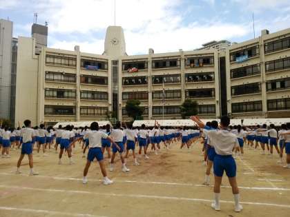 生徒宣誓の後は、プログラム番号1番、伝統の東中体操です!