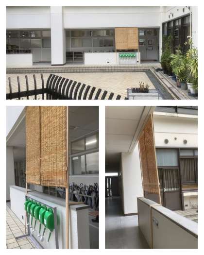 職員室が北側に引越後、高校の先生方をはじめ、職員室を訪ねていただく方に、午前中は、日差しが直撃していました。この課題解決に匠の技が発動。校内に在庫のあった木材とすのこを組み合わせて、写真のように、日陰を提供するスペースを作ってくれました。東中の課題に対して、今ある在庫で素早く対応する匠の技。校内のここかしこに、匠の技がおもてなしの心を添えて光っています。東中は、やっぱり日本一の学校です!