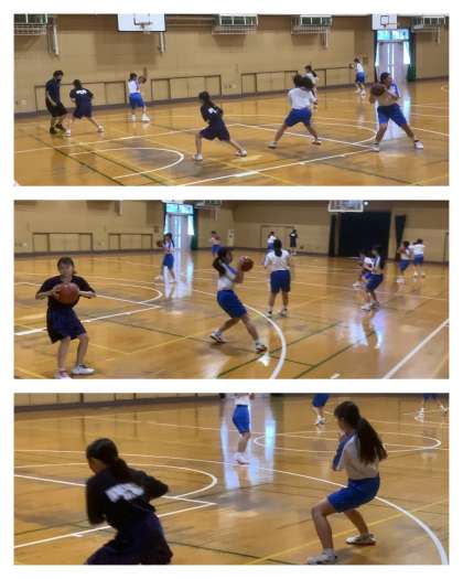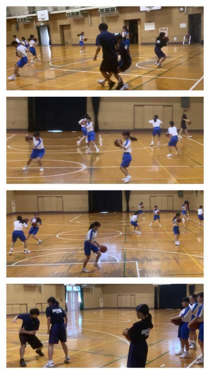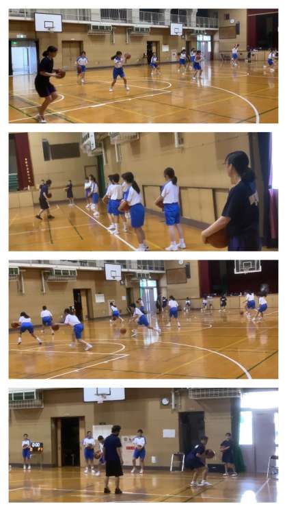夏休みの体育館での部活動は、全面を使って練習ができるように時間を調整しています。今朝は、女子バスケットボール部が、8時から活動しています。