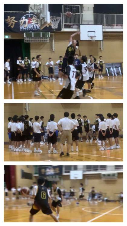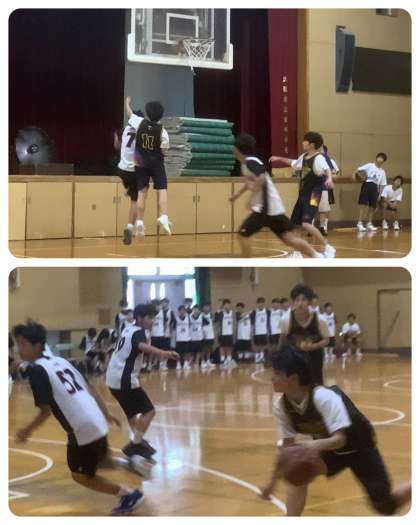 午後の体育館では、男子バスケットボール部が、練習試合です。保護者の方にも観戦いただく中で、メンバーを入れ替えながら、練習の成果を発揮していきます。