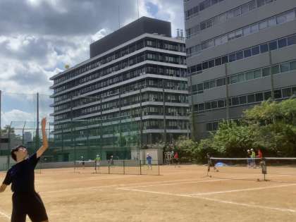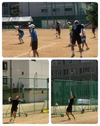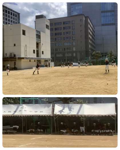 午前中のグランドでは、野球部と男子ソフトテニス部が活動しています。
