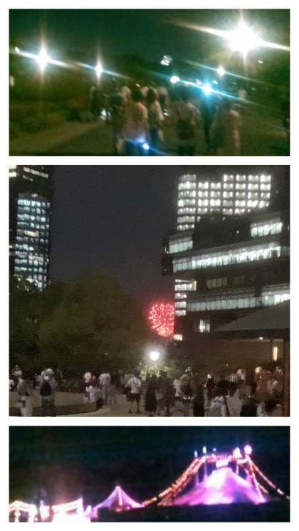 パトロールは、奉納花火の大きな音をBGMを聞きながら、3グループ(市民の広場方面、天守閣方面と京橋方面)に分かれてパトロール。約1時間かけて行いました。