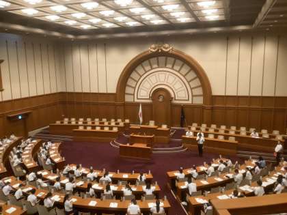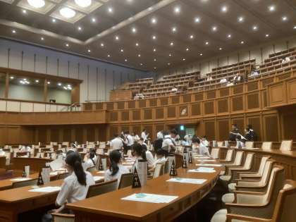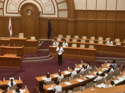 おおさか 子ども市会 委員会(意見交流会)が、始まります。場所は、市会本会議場。司会は、もと東中学校の先生が、指導主事として大役を担っています。