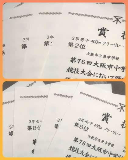 後になりましたが、水泳部の活動にご理解とご協力、ご支援をいただきありがとうございました。また、応援にもお越しいただきありがとうございました。3年生は活動の一区切りですが、次は、大阪市第3ブロック大会が予定されています。引き続き、活動へのご理解とご協力をよろしくお願いいたします。