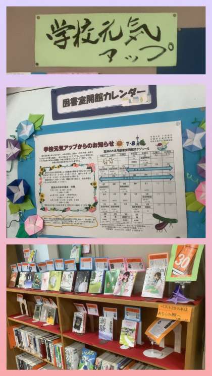 学校元気アップのコーディネーターとボランティアの方々が、図書室を開放してくださっています。ありがとうございます。今日と21日(月)・22日(火)・24日(木)10時から13時まで開館しています。