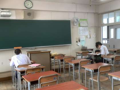 2年生の教室では自学自習に取り組む生徒がいます。「教室は集中できるからいい」、とのことのようです。家では、ついついスマホに時間を奪われがちです。学習できる環境に身を置くことは大切です。2学期の始業式まで1週間。