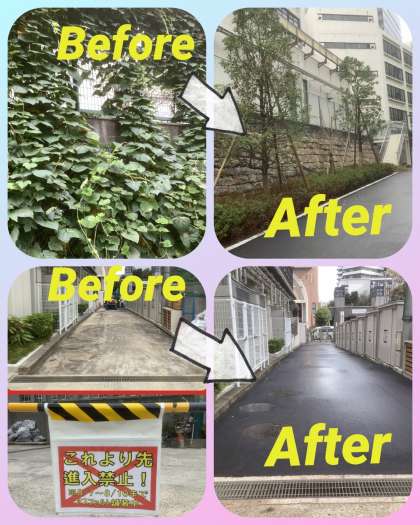 西門の内側の壁を覆っていたツタは一掃し、東門のスロープはアスファルト舗装されました。