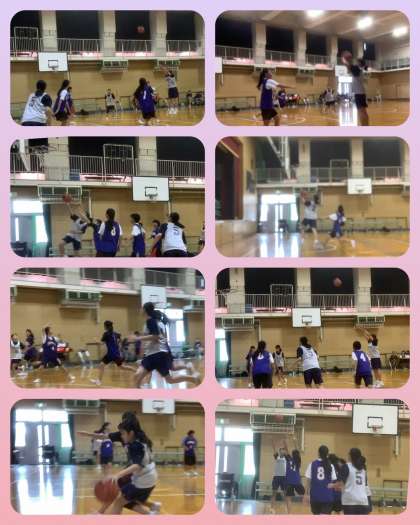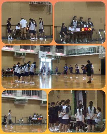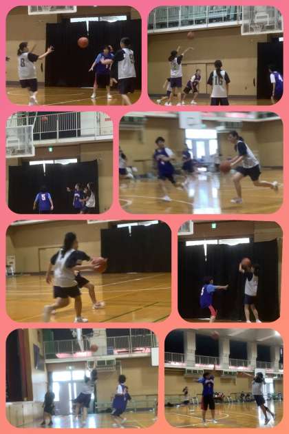 女子バスケットボール部が、2校を招いて練習試合をしました。前半・後半を8分、インターバルを2分で、次々と対戦相手を変えて試合をしていきます。試合のない時は、オフィシャル(スコアなどの係)をします。1年生も、わずか4ヶ月の活動で、このオフィシャルができるようになりました。