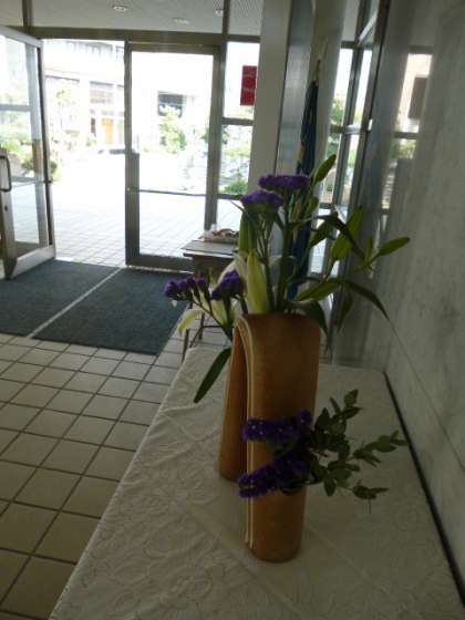 玄関ホールにあるお花は、学校支援ボランティアの中村さんが生けてくださっています。