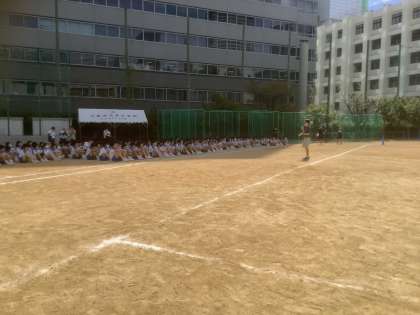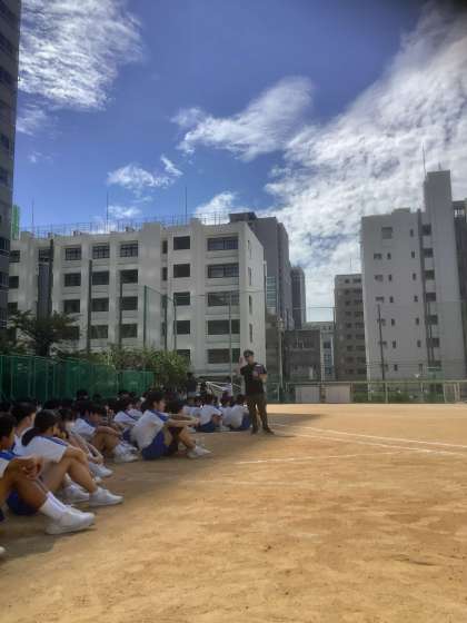 3年生は、グランドで体育大会に向けての全体練習を中断して、教頭先生の放送を聞くことになりました。想像以上の大音量の防災無線の声に、教頭先生の声がかき消されてしまいます。しかし、3年生は、途切れ途切れになる教頭先生からのメッセージを聞こうと努めていました。そして、その姿に3年生の成長を感じました。放送後、学年練習に切り替わりましたが、体育大会が、生徒たちの主体性が生き、思い出に残る、心に残る行事になることを願います。
