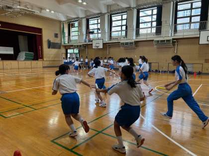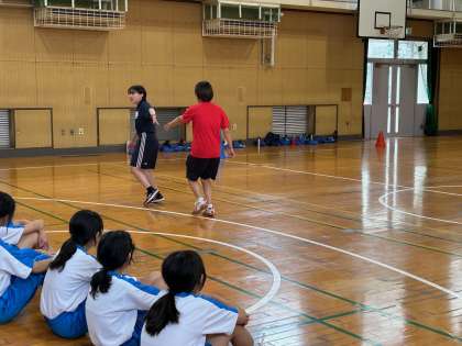 テイクオーバーゾーンなど基本的なルールを頭に入れて実際に走りながら「はい!」と言ってパスします。教育実習生の指示もとても分かりやすいものになってきました。
