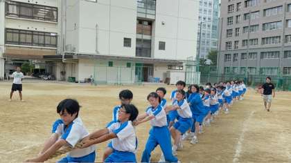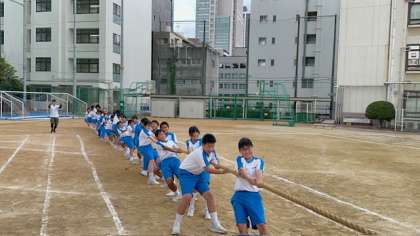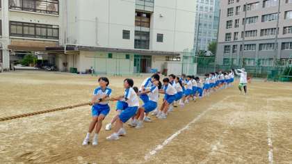 5限には「綱引き」の予選も行いました。陣地決めのじゃんけんだけでも盛り上がる1年生。2試合目の途中で、空が暗くなり、その後、、大粒の雨が降ってきて、予選は中断。残り4試合の予選は順延になりました。