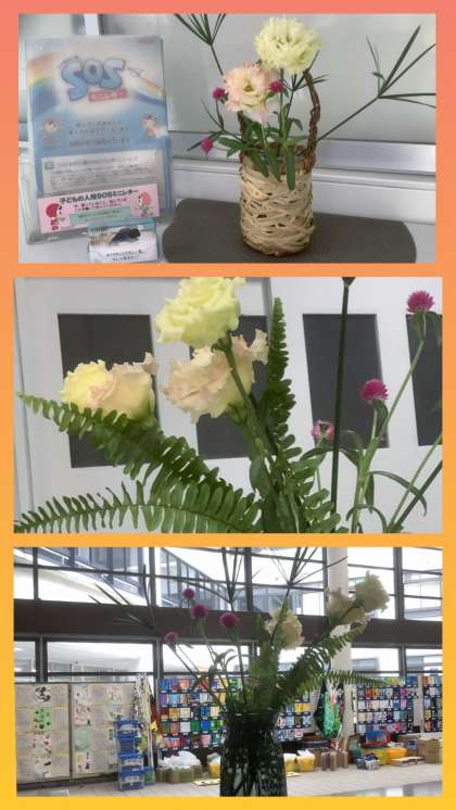 玄関ロビーと職員室前のお花を活け替えていただきました。玄関ロビーには「トルコキキョウ・千日紅・かやつり草・タマシダ」、職員室前には「トルコキキョウ・千日紅・かやつり草」です。いつも東中生のためにありがとうございます。