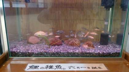 東中百景のひとつ、池の鯉の稚魚が誕生して4ヶ月余り、水槽の中で成長しています!このまま成長を続けていくと、今の水槽では狭くなりそうという嬉しい悩みです。