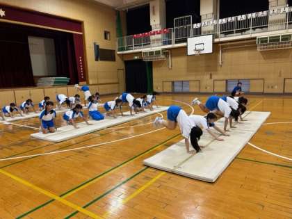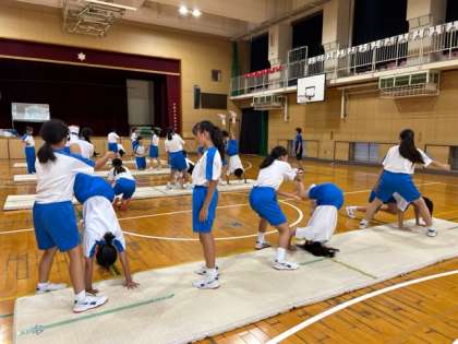 体育大会から気持ちを切り替えて、体育館で「マット運動」の学習です。