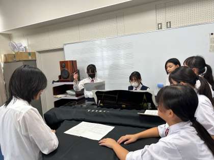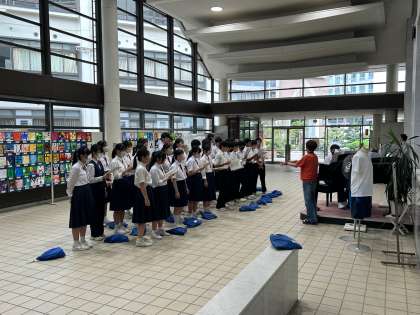ピアノのおいてある玄関ピロティや多目的室、もちろん音楽室から歌声がきこえてきます。素敵ですね〜。