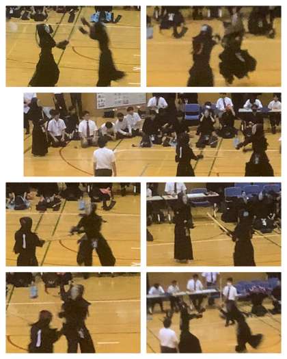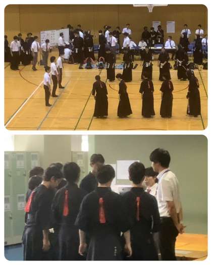 剣道部男子学校団体は、第3ブロック優勝の実績でシード校として、2回戦からの登場です。相手は、今日の1回戦を勝ち上がり、波に乗っています。逆に東中学校は、朝から会場に入り、練習場で朝を流したものに、昼過ぎに第一試合となり、モチベーションを試合に向けて高めるには難しい試合となりました。その試合では、一人ひとりが積極的に技を繰り出すものの、東中には旗が上がらず、一瞬の隙をつかれて一本を取られてしまいます。最後まで粘って闘いましたが、トーナメントを勝ち進むことができませんでした。残念無念!l