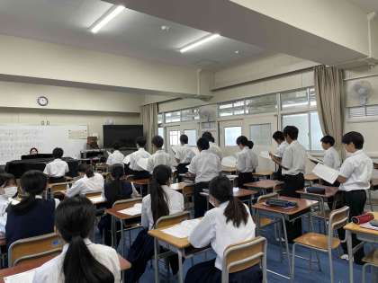 1年2組の音楽科の授業では、合唱コンクールに向けて歌の練習が行われています。