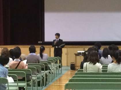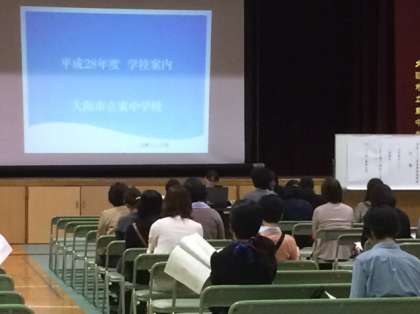 土曜参観の後、体育館にて学校説明会を行いました。行事や、学校のきまりなど東中学校の概要を説明させていただきました。