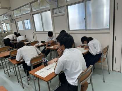 刻印をつくる前にプリントでデザインをしていました。なかなか文字を変えていくのがむずかしそうですが、たくさんのアイディアがでていました。さすが、3年生!!
