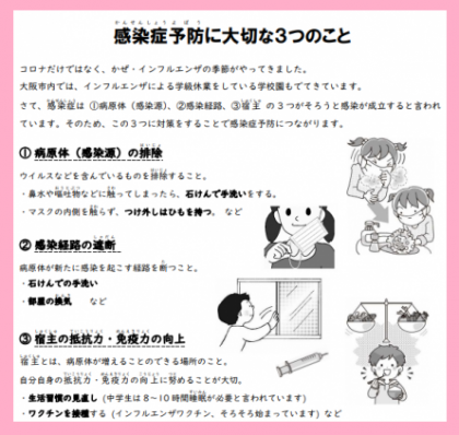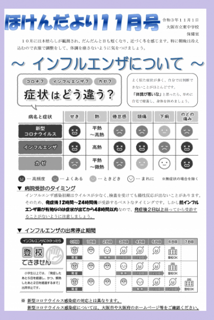 また、一昨年の11月号では、「新型コロナ・インフルエンザ・カゼ」の症状の違いやインフルエンザの出席停止期間について、掲載されています。こちらをクリックするとご覧いただけます。