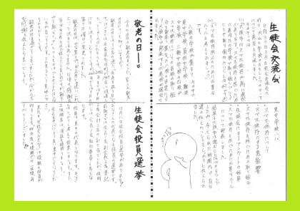 裏面では、「生徒会交流会」「敬老の日」「生徒会役員選挙」についての記事が掲載されています。ぜひご一読ください。