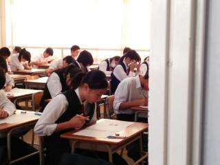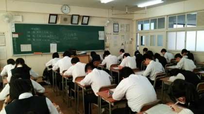 1時限目、3年生は国語です。2,3限目は社会・英語です。1、2年生はその逆で実施しています。
