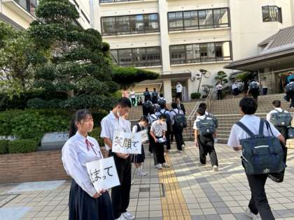 生徒会、風紀委員会によるあいさつ運動です。