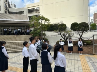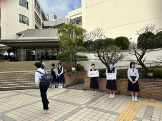 風紀委員会と生徒会が元気にあいさつしてくれました。今週は中間テストがありますが、計画してきた内容をしっかりこなして臨みましょう。