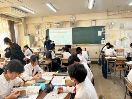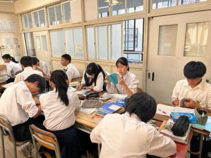 学校をホームページで紹介しよう!の単元で各班に分かれて調べ学習を行なっていました。辞書を使いながら言葉を探していきます。協働学習で得るものは大いにあると思います!!がんばろう3年生!!