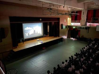 1年生は、朝から展示の見学を済ませ、教室で動画(生徒会スマホサミット・校区探検(2)、2年生合唱コンクール優賞学級、「2023ガーデニング部『地球人Xの3年間』)を鑑賞しました。