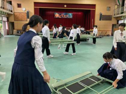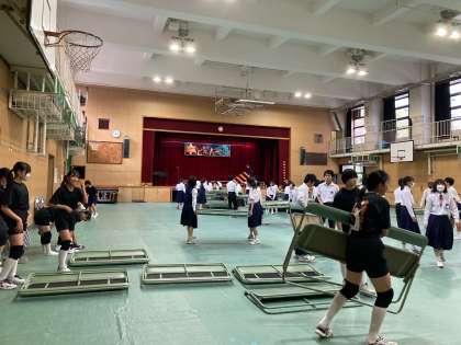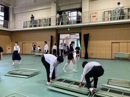 体育館の片付けを、2年生と部活動の生徒とで行いました。
